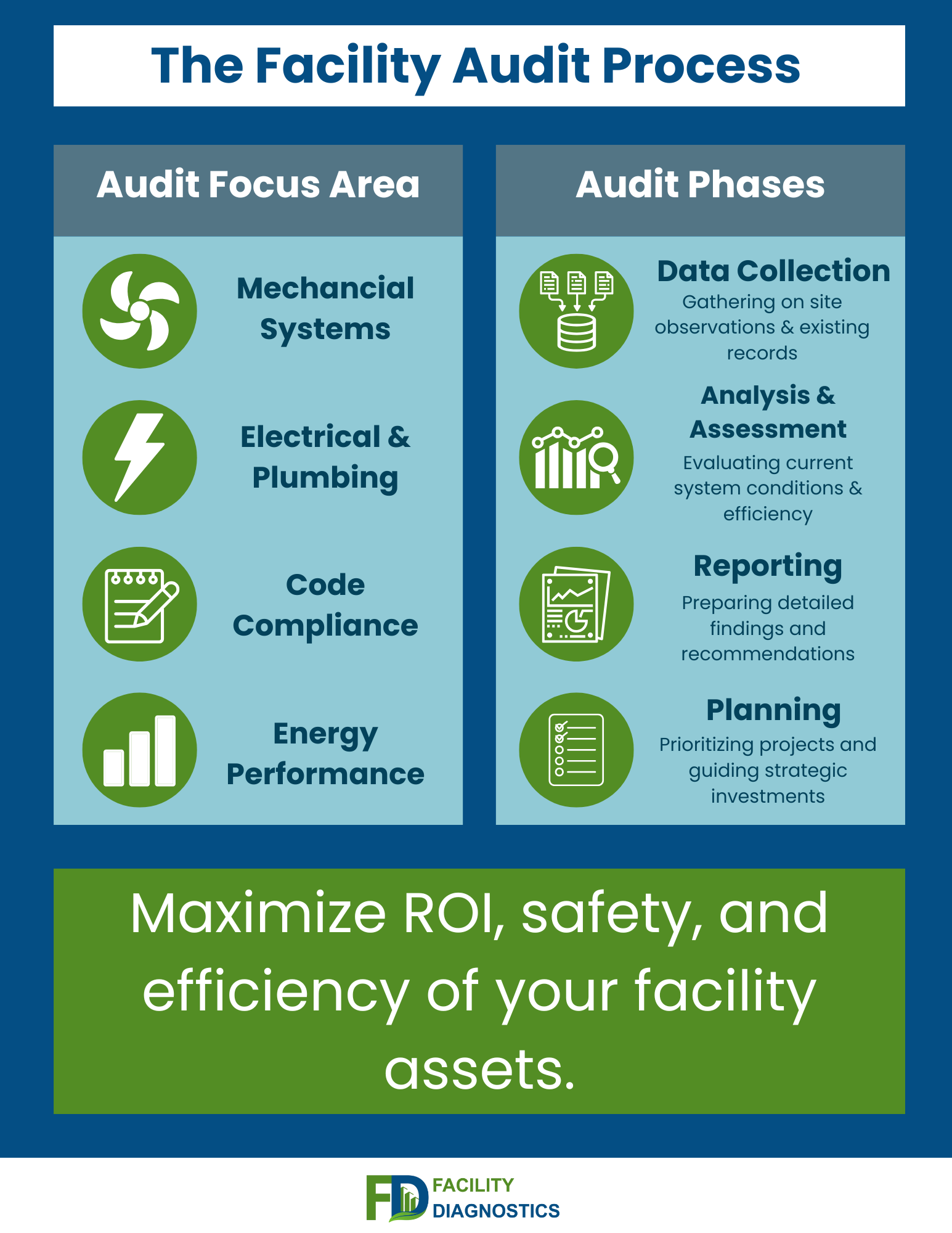 A Facility Condition Assessment is a systematic evaluation of a building’s mechanical, electrical, and plumbing (MEP) systems, infrastructure, envelope, and other critical components. It identifies: